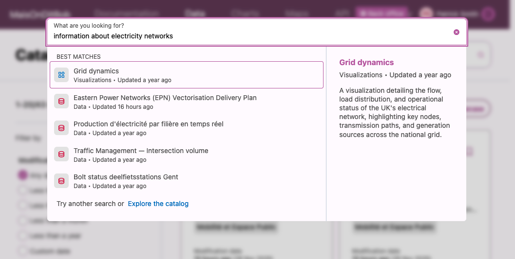 Cette technologie puissante offre une alternative à la manière dont nous recherchons traditionnellement des ensembles de données, en fournissant un plus large éventail de résultats pertinents, même lorsque les mots clés exacts ne sont pas utilisés dans la requête.