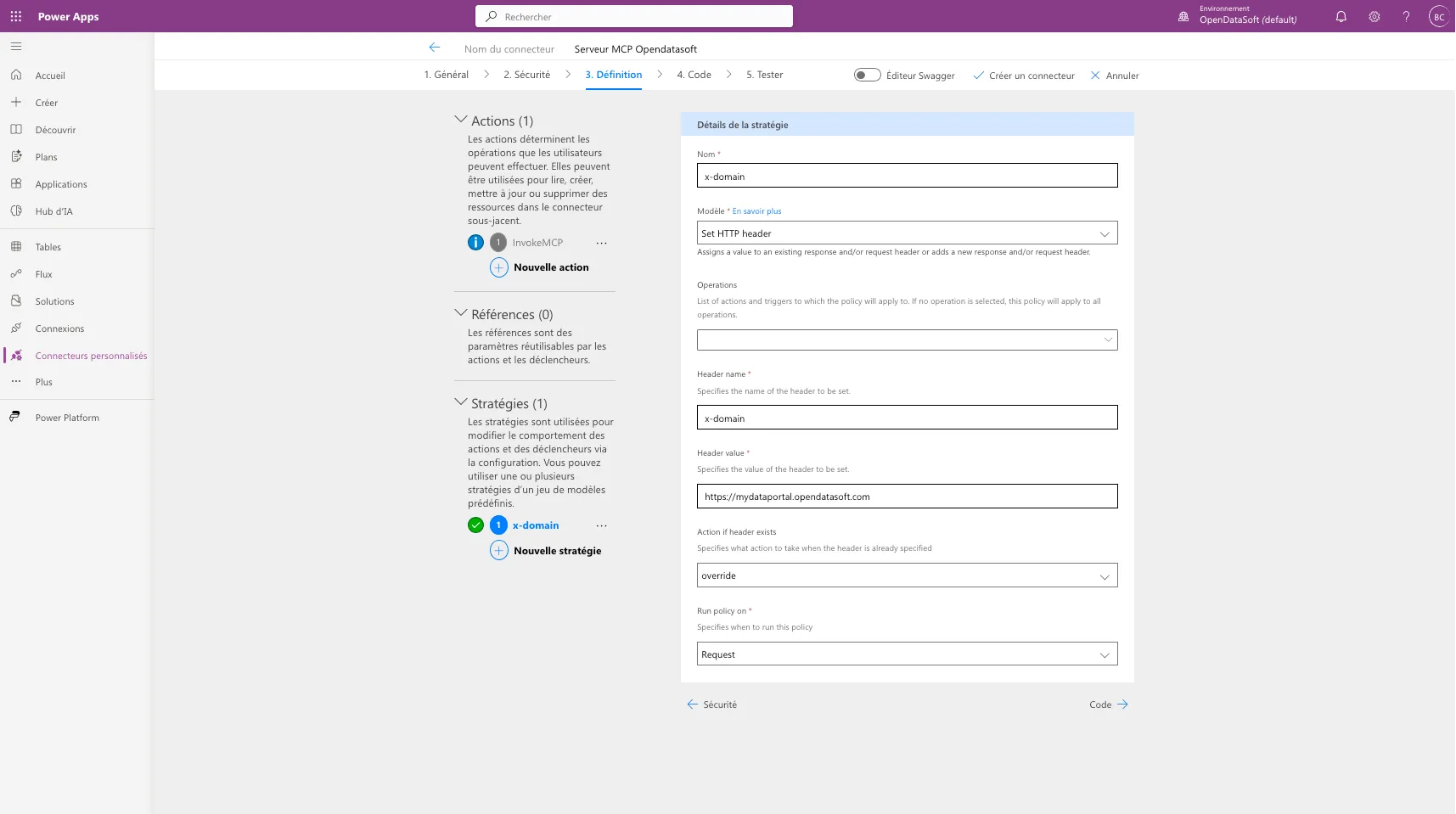 description: SuccèsÀ ce stade, déclarez les deux variables d'en-tête, "x-domain" et "x-apikey", dans le connecteur. Ces variables sont nécessaires pour authentifier l'assistant à votre marketplace, en particulier pour les données privées.