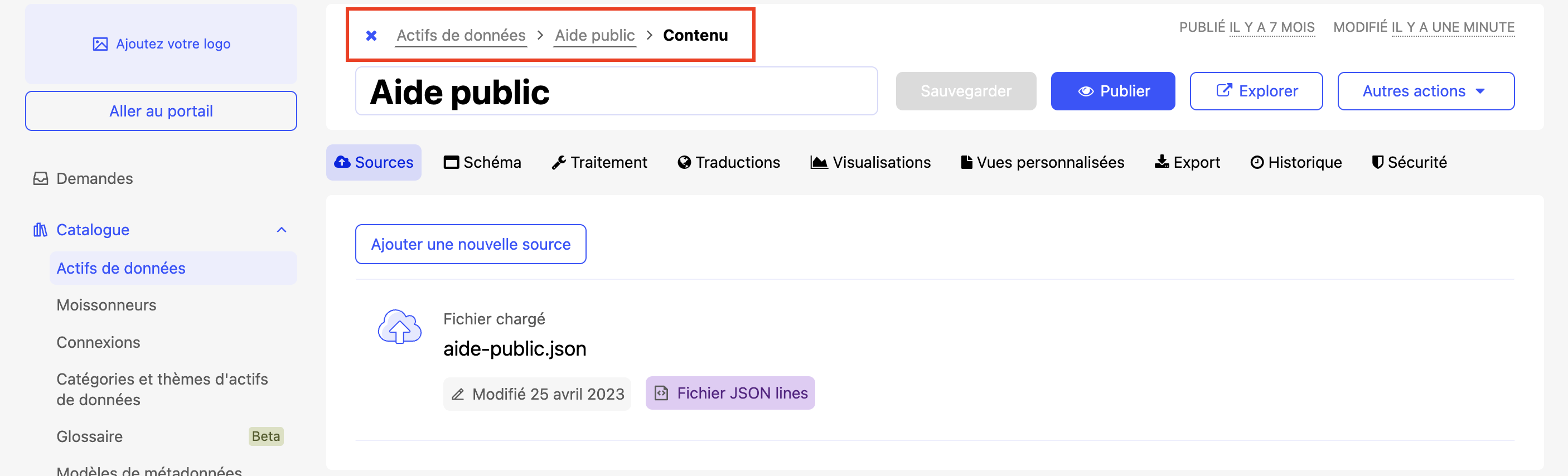 Un portail peut héberger différents types d'actifs : jeux de données, pages Studio, actifs externes, etc. Bien que les visualisations soient souvent les plus engageantes pour les explorateurs de données, les jeux de données restent le cœur du portail. Ils alimentent les graphiques, les KPI et les tableaux de bord. C'est pourquoi savoir publier et gérer efficacement les jeux de données est au cœur du rôle de producteur de données. Vous pouvez en savoir plus sur ce que vous pouvez faire avec les jeux de données dans cette section.